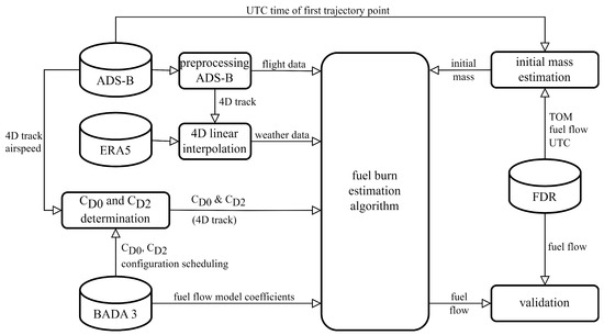 Figure 1. Block diagram for validation of fuel burn algorithm using ADS-B and ERA5 data.
