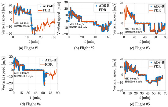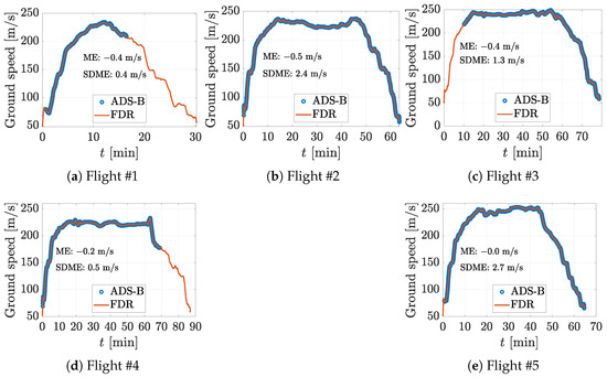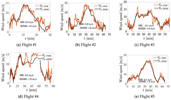 While our study primarily relies on ADS-B and ERA5 data, it is worth noting that alternative sources for meteorological data exist and could be considered. For instance, Mode S secondary surveillance radar technology allows air traffic controllers to access various information from aircraft, including airspeed, turn parameters, target altitudes, and meteorological conditions. Mode S enhanced surveillance (EHS) is a valuable feature for approximately 99% of Airbus- and Boeing-type aircraft [26]. In the EU, EHS is mandatory for all fixed-wing aircraft flying under instrument flight rules (IFR) within the general air traffic category. This requirement applies to aircraft with a maximum take-off weight exceeding 5700 kg or those with a maximum cruise true airspeed (TAS) higher than 250 kt [27]. Since the Mode S data are often incomplete [15] and not available for all aircraft flying under IFR, we considered ADS-B in combination with ERA5 data. Additionally, some aircraft transmit Mode S meteorological routine air report (MRAR) data. While MRAR data includes highly valuable information about wind and temperature, it is important to note that only a limited number of aircraft transmit these data [28]. Despite the potential of these alternative data sources, our study does not investigate these approaches in detail.