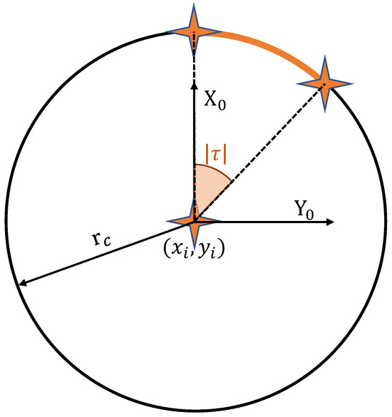 A circle centered at as shown in Figure 3 can be parametrized as [23]: