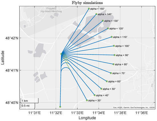- Piprek, P.; Schneider, V.; Fafard, V.; Schatz, S.P.; Dörhöfer, C.; Lauffs, P.J.; Peter, L.; Holzapfel, F. Enhanced kinematics calculation for an online trajectory generation module. Transp. Res. Procedia 2018, 29, 312–322. [Google Scholar] [CrossRef]