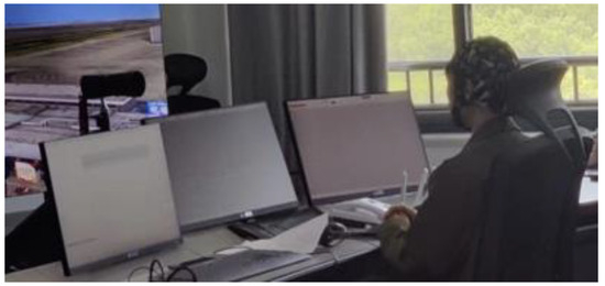 In collaboration with the Jiangsu Air Traffic Control Bureau, we collected radio telephony data and facial data from 14 certified air traffic controllers while they were working. We used the same aircraft model as the Jiangsu Air Traffic Control Bureau to ensure that the simulation environment was identical to the actual working environment. The data collection experiments were conducted on a control simulator produced by China Electronics Technology Group Corporation. The control simulator system was divided into two parts: the tower seat and the captain’s seat. The experimental environment of the control tower seat is shown in Figure 3. The subjects were located in the tower seat, and the equipment used included apron display screens, electronic progress sheet display screens, control call recording equipment, and facial data collection cameras. The subjects comprised seven males and seven females, all of whom were licensed tower controllers in the Air Traffic Management Bureau and came from East China; hence, their radio telephony had similar pronunciation characteristics. They had between 3 and 8 years of work experience, and the workload of the air traffic controllers in the simulation scenario was similar to the workload in their actual working environment. All the subjects had rested sufficiently (>7 h) for the two nights before the experiments and were prohibited from consuming food or alcohol that might affect the experimental results. All the experimenters were fully familiar with the control simulator system. All the subjects were informed of the experimental content and had the right to withdraw from participating in the experiments at any time.