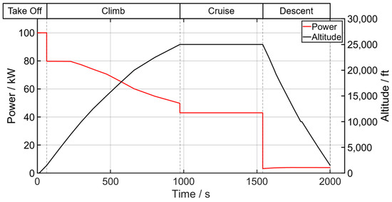 Exemplary scaled down mission profile with an assumed cruise altitude of 25,000 ft.