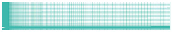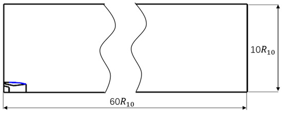The simulation calculations utilize a two-dimensional half-symmetric model. Figure 3 shows the flow field calculation domain. To mitigate potential influences on the results due to the computational domain, the calculation domain is 60 long and 10.
