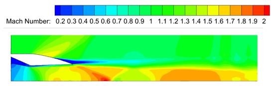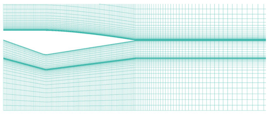 This article uses commercial software Fluent v 6.3 for numerical calculations, selecting a density-based two-dimensional N-S equation solver. The flow control equation is discretized using a second-order upwind scheme, and the turbulence model uses the SST k-ω model [38].