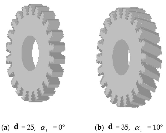 By setting the control factor , can set the thickness of turbine disk; can set the inclination Angle of the tenon in the z direction. Three-dimensional point cloud data of turbine disk, and the modeling algorithm is as Equation (32).