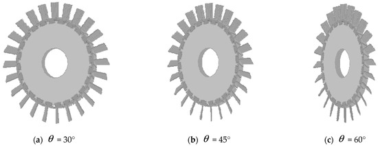 Therefore, the blade profile boundary can be modeled by adjusting the blade profile control factor . According to the above algorithm, the blade profile boundary can be obtained. Since the blade body is not straight on the tenon, the rotation angle of the blade profile on the tenon is controlled by the control factor , the algorithm is as Equation (45):