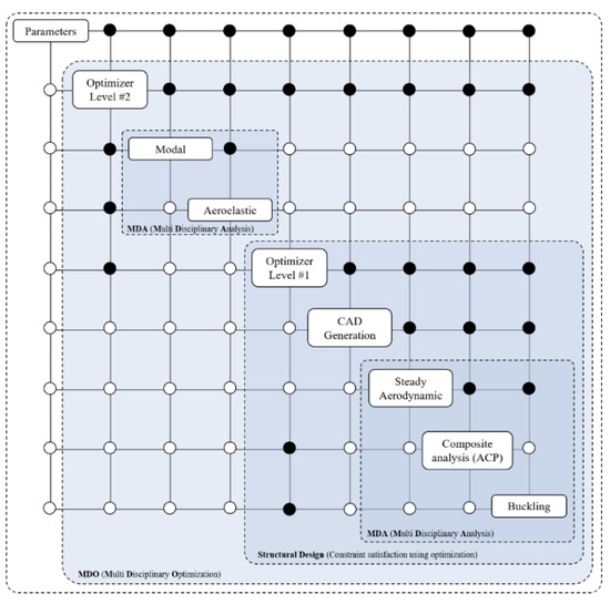 Figure 2. Design structure matrix (DSM) of the MDO.