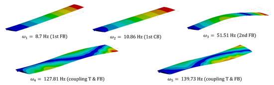 29. Landsberger, B.J.; Dugundji, J. Experimental aeroelastic behavior of unswept and forward-swept cantilever graphite/epoxy wings. J. Aircr. 1985, 22, 679–686. [Google Scholar] [CrossRef]