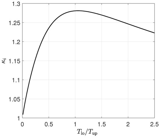 The interference factor versus thrust ratio, i.e., Equation (39), is shown in Figure 5, and it should be aware that in Equation (39) equals in Figure 5. If the lower rotor thrust is a typical value at 80% [34] of the upper rotor, the power of the contra system is 27% higher than that of the two isolated rotors. The worst case is that the two rotors have approximately the same thrust, with a power consumption that is 28% larger than the two isolated rotors.