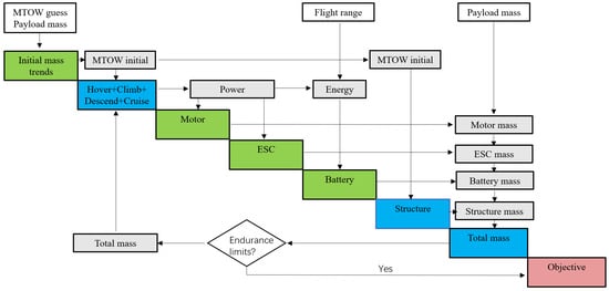 - Budinger, M.; Reysset, A.; Ochotorena, A.; Delbecq, S. Scaling laws and similarity models for the preliminary design of multirotor drones. Aerosp. Sci. Technol. 2020, 98, 105658. [Google Scholar] [CrossRef]