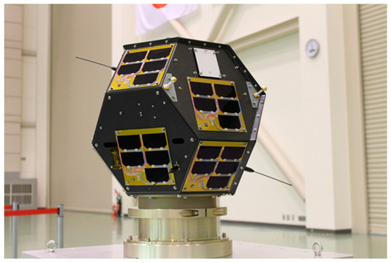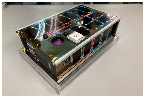 The LEO environment observation satellite Ten-Koh 2 is the successor of Ten-Koh, launched in 2018. It is a satellite 6 U in size with a mass of about 7.0 kg that will be launched at about a 500 km orbit using JAXA’s next-generation H3 launch vehicle and released using the new HTV-X ISS resupply vehicle [14]. Ten-Koh 2’s FM is shown in Figure 4.