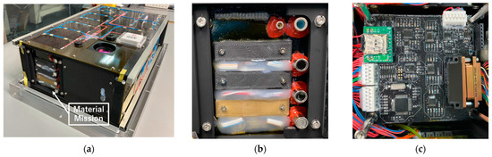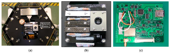 (a) Location of Material Mission on top panel of Ten-Koh; (b) appearance of External PCB; (c) appearance of Internal PCB [13].