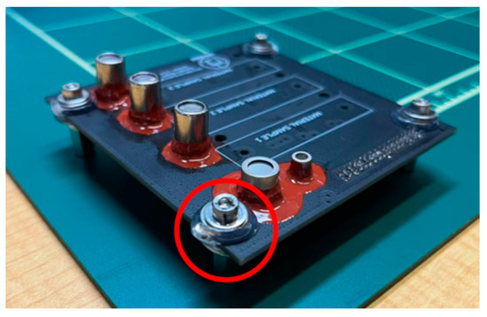 The photodiode used in this observation system is equipped with five types of photodiodes that can detect UV wavelengths of UVC. The photodiode’s photosensitive surface is made of glass, so it was necessary to consider a design that would withstand vibrations during launch. As a design solution for withstanding vibrations, a silicone material that can absorb vibrations was inserted between the PCB, bottle nut, and spacer to prevent the glass in the photosensitive area from breaking. The vibration tests were conducted under the test conditions required by JAXA, and the design was confirmed to be durable. The Material Mission External PCB for the EM (Engineering Model) is shown in Figure 8.