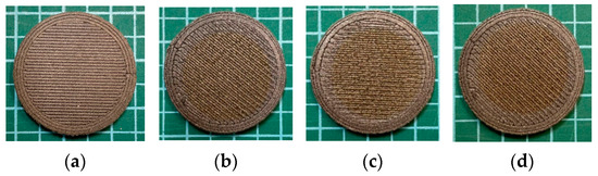 Appearance changes in 3D-printed PEEK/CFRTP materials in UV irradiation test: (a) 0 ESD, (b) 40 ESD, (c) 60 ESD, (d) 100 ESD.