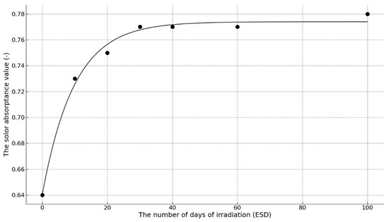 The results of the solar absorptivity value. (The X-axis presents the number of days of Irradiation, and the Y-axis presents the solar absorptance value).