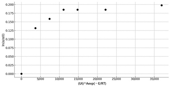 The graph for calculating Cu. (The X-axis presents (Ut)Aexp(−E/RT), and the Y-axis presents ln()).
