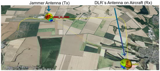 This article consists of five sections. The introduction is provided in Section 1. Section 2 provides the details about DLR’s measurement campaign whose data will be taken as a reference for the virtual validation. Installed performance analysis of the receiver antenna/jammer over aircraft/ground is explained in Section 3. Section 4 covers full-scenario simulation with two scenarios: (1) Jamming power level estimation, and (2) GNSS reception during jamming. Simulation and measurement results are discussed in Section 1. Finally, conclusions are given in Section 5.