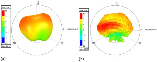 Radiation pattern of one antenna element. (a) Measured pattern in Starlab. (b) Installed performance on Aircraft.