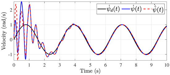 Tracking performance of the yaw velocity () and its estimation with Hz.