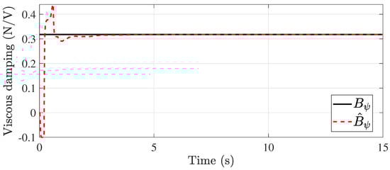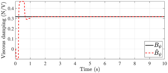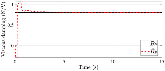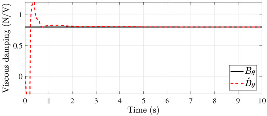 In this case, the viscosity values are considered to be completely unknown. An important advantage of the system proposed in Equation (1) is that state-dependent functions and inputs can be present in the matrix , and by taking advantage of this, it is possible to estimate the unknown values. For this, the following state vector is considered: with , , and . Now, considering the state vector , the system (49) can be rewritten as follows: