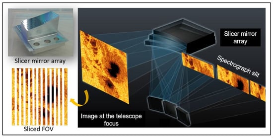 - Calcines, A.; López, R.L.; Collados, M. A High Resolution Integral Field Spectrograph for the European Solar Telescope. J. Astron. Instrum. 2013, 2, 1350007. [Google Scholar] [CrossRef]
