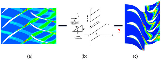 Fan-linearized acoustic modeling and actual flow processes in low-pressure turbines. (a) Fan wake interaction process; (b) Linear thin flat-plate assumption [37]; (c) Turbine wake interaction process.