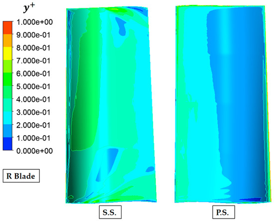 distribution on rotor surfaces. (Left): S.S.: Suction Surface; (Right): P.S.: Pressure Surface. (there is no negative value).
