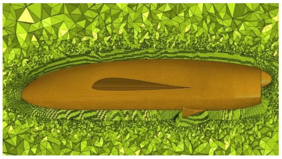The mesh generated for the CFD analysis, as shown in Figure 2, was an unstructured mesh of tetras with 10 layers of hexas close to the UAV geometry. The purpose of this was to accurately capture the boundary layer phenomena close to the surface. The total size of the model was ~8,300,000 elements. The target of this analysis was to perform a quick analysis that will capture the basic phenomena around the UAV and provide a preliminary estimation of the loads on the UAV structure. For this reason, no complex turbulence models were used, other than the 1-equation Spallart-Almaras [28] turbulence model (a very robust model for aerospace and external aerodynamics applications). Furthermore, no sensitivity analysis was performed regarding the size and refinement of the mesh or the turbulence model (Figure 3).