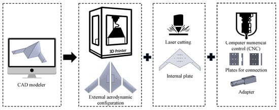 Rapid prototyping (RP) technologies permit faster manufacturing of a test model using a computer-aided design (CAD) geometry with robust, accurate, and reasonable cost to support the wind tunnel testing of aircraft models. They can be applied to manufacture components with complex geometries by curing liquid material or bonding solid powder by methods such as cementation, sintering, polymerization, chemical reaction, etc. [1]. The RP model can be made of different materials, such as polymers, metals, and paper, utilizing various techniques. An overview of RP technology and its ability to shorten the product design and development process has been provided in many references [2,3]. Table 1 provides a comparison of the commonly used RP fabrication methods, which are fused deposition modeling (FDM), selective laser sintering (SLS), and stereolithography (SLA) [3]. Generally, the selection of appropriate methods for model fabrication is a complex process and requires user expertise. A systematic method for the selection of suitable RP technology using the analytic hierarchic process by considering different parameters such as environmental, product, and process requirements was provided by Lokesh and Jain [4]. They concluded that the FDM procedure received the highest grand rating point based on their evaluation.