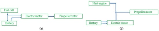 (a) Series hybrid propulsion system, (b) parallel [40].