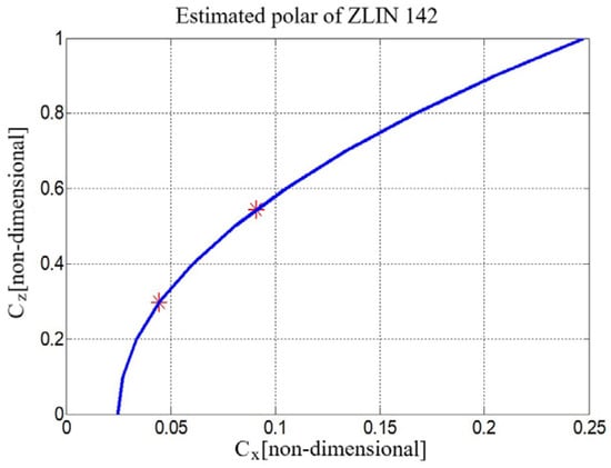 considering that the lift L must be equal to the weight of the aircraft in horizontal flight. Two points on the lift–drag polar Cz (Cx) can be determined using the data from Table 2.