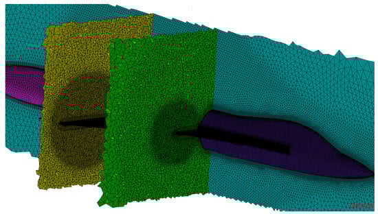 The TAU-Code (triangular adaptive upwind) developed by DLR is used as the fundamental flow solver. The DLR TAU-Code is widely accepted in the aviation industry and provides a tool to run complex flow simulations on structured and unstructured hybrid grids. It represents not one simple code but a modern software system to compute inviscid and viscous flows at various flow velocities for simple and complex geometries. The TAU system is composed of different modules and libraries to allow for the easier development, maintenance, and reuse of the code or parts of it. Single modules can be used as stand-alone tools with a specific file I/O or in combination with a Python scripting framework, allowing inter-module communication and enabling interaction with a started simulation []. The flow calculations are based on the dual grid approach, which gives good results for three-dimensional hybrid grids. The Runge–Kutta dual time stepping method or a backward Euler implicit scheme are used as a time-marching method to solve three-dimensional Navier–Stokes equations with LU-SGS (lower-upper symmetric Gauss-Seidel) or SGS iterations. The optimization process described in Section 5 is coupled with TAU via a Python framework (Python 3.8.16).