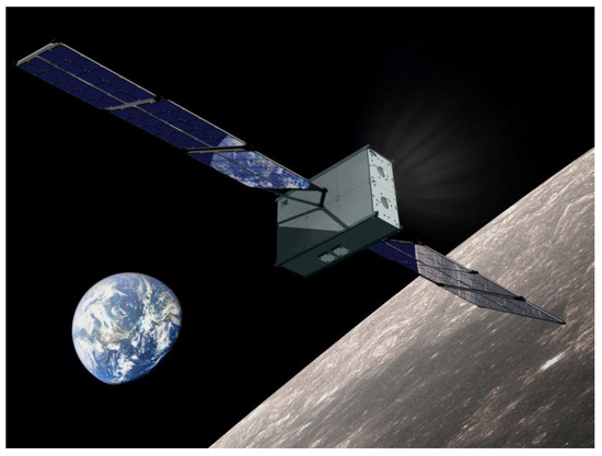 Pictorial representation of a small spacecraft in orbit around the Moon (image courtesy of NASA).