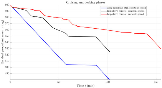 During the cruising phase, it is not essential to control the attitude of a spacecraft, which may keep a constant orientation resulting from the terminal state of previous maneuvers, until the beginning of the docking phase. Nevertheless, to aid the stability of a spacecraft against unforeseen events [3], in the present research endeavor, we deemed it appropriate to explore a number of attitude regulation strategies. In practice, a slight misalignment might certainly be tolerated, even during docking, as it is the case in different kinds of operations [39].