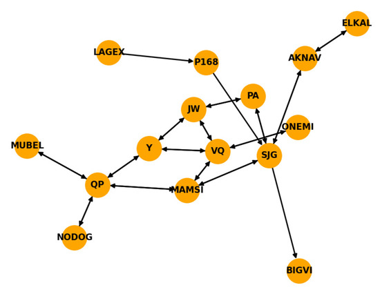 Figure 2 shows a route point network topology structure with 15 route points as nodes and connections (flight segments) between route points as edges. This diagram can be represented as , where is the set of nodes, denoted as , represents the number of nodes in the route point network topology diagram , , and is the set of directed edges, denoted as .