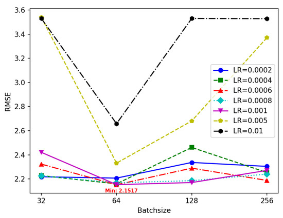 Figure 13 shows the comparative experimental results for different learning rates and batch sizes. It can be observed that the model achieves the best prediction performance when the learning rate is 0.0006 and the batch size is 64.