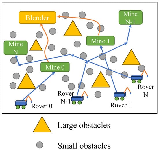 Furthermore, rovers will depart from different points, but the time difference between arriving at the blender should be as short as possible. The entire environment can be represented as Figure 1.