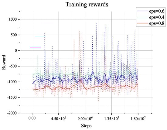 Different training reward in Rainbow DQN when ‘eps’ change.