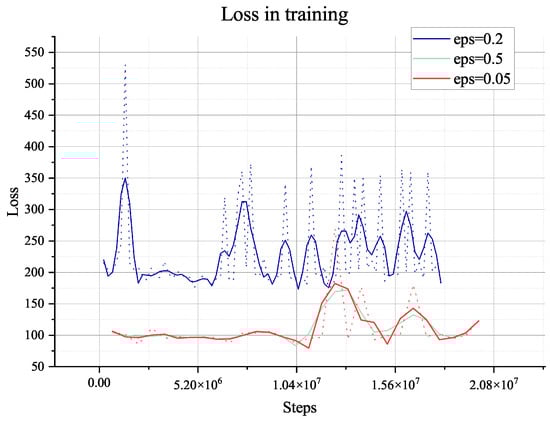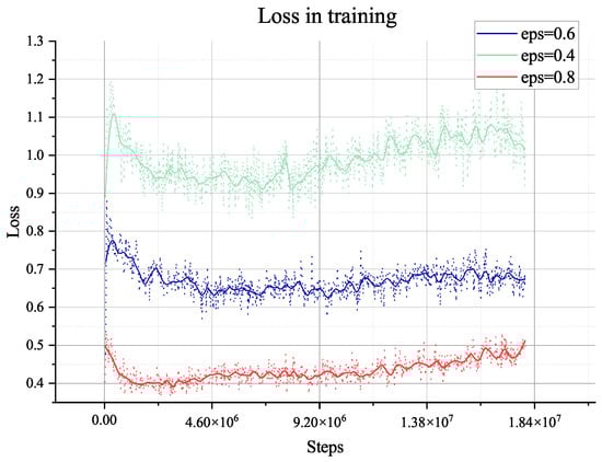Different training loss in Rainbow DQN when ‘eps’ change.