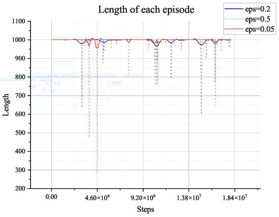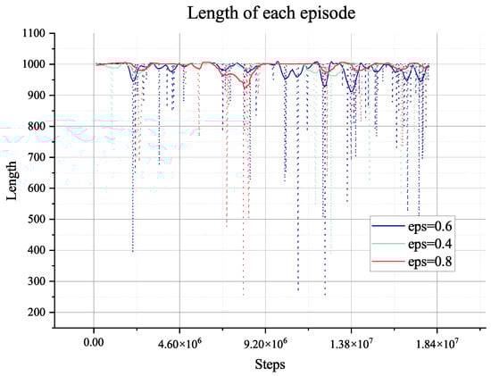 Different episode length in Rainbow DQN when ‘eps’ change.
