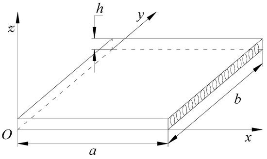 The first example is a single-layer-thick square plate, as shown in Figure 3, with in-plane dimensions a = b, thickness h, and the span-to-depth ratio S = a/h = 10. The material properties are Ex = 10, Ey = 10Ez, Gxy = Gxz = 0.6Ez, Gyz = 0.5Ez, and νxy = νxz = νyz = 0.25. The boundary conditions are σxx = 0, ux = uz = 0 on x = 0 and x = a; and σyy = 0, ux = uz = 0 on y = 0 and y = b. The uniformly distributed load q0 = 1.0 is on the upper surface of the plate. This particular problem has been investigated by Fan [26].