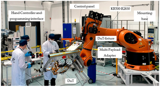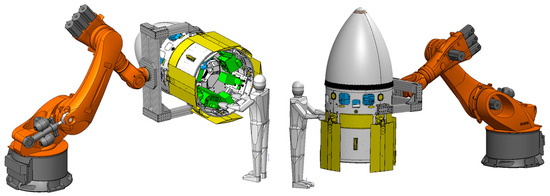 - Gümpel, F. Evaluation of Robot-Assisted Spacecraft Alignment. Master’s Thesis, University of Bremen, Bremen, Germany, 2023. Available online: https://elib.dlr.de/196013/ (accessed on 20 February 2024).