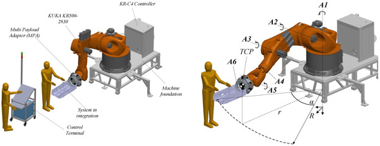 - KR500 FORTEC Data Sheet’. Available online: https://www.kuka.com/-/media/kuka-down-loads/imported/8350ff3ca11642998dbdc81dcc2ed44c/0000233238_de.pdf?rev=bf55b64f81684c078c02ac014d72cd16&hash=10D71651A30CB6248FC43AF37FEB20A3 (accessed on 29 October 2023).