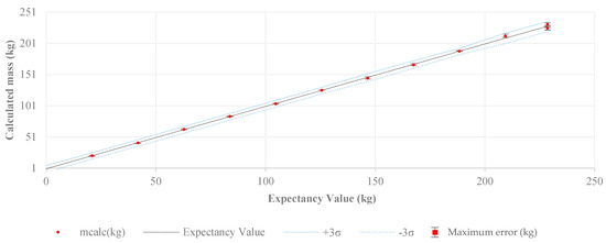 | m (kg) | MA3,norm,measured (Nm) | MA5,norm,measured (Nm) | MA3,calc (Nm) | Error MA3 (%) | MA5,calc (Nm) | Error MA5 (%) | mcalc (kg) | Δmcalc (kg) | Δmcalc (%) |