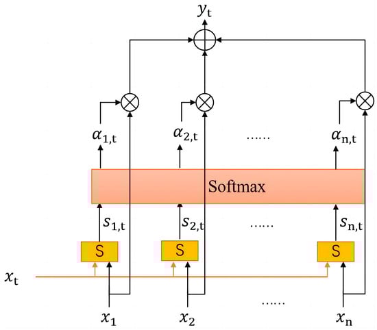 The core idea of the attention mechanism is to compute weights for each input part and apply these weights to the representation of the input sequence, generating a weighted sum representation. This weighted sum representation is then used as the output of the model or passed to the next layer for further processing. The weights of the attention mechanism are typically determined by calculating the relevance between each part of the input sequence and the current task. The structure of the attention mechanism is shown in Figure 1.