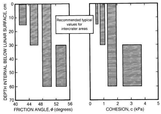 - Christensen, E.M.; Batterson, S.A.; Benson, H.E.; Choate, R.; Hutton, R.E.; Jaffe, L.D.; Jones, R.H.; Ko, H.Y.; Schmidt, F.N.; Scott, R.F.; et al. Lunar surface mechanical properties. J. Geophys. Res. 1968, 73, 7169–7192. [Google Scholar] [CrossRef]