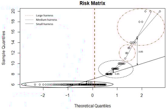 The functionality of the risk matrix provides features for identification of the risk in a more efficient manner. It is defined by categories such as low, medium, and high risk, which are established by assigning scores to each element of the dataset. Thus, data prioritization needs to be considered for immediate attention and mitigation. Overall, management of the risk provides information in real time in order to make the best decisions [31].