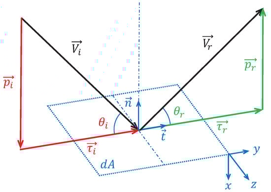 where is the force acting on a surface element, and are the normal stresses of incident and reflection particles on the surface element, and are the shear stresses, respectively, is the surface inward normal vector, and is the local velocity direction tangential vector.