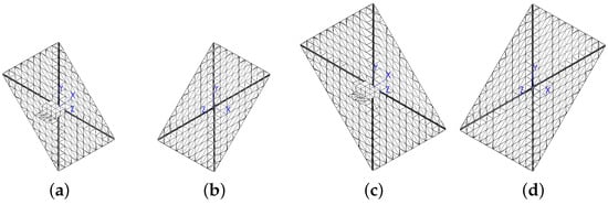 To examine the effect of attitude on , this study sets the angle of attack and angle of sideslip to 0, 30, and 60 degrees. Thus, a total of nine attitudes are produced and labeled in Table 3. A case number consists of two digits. The former indicates , and the latter indicates . The digits 0, 3, and 6 represent 0, 30, and 60 degrees, respectively. In this study, the surfaces of the test component are kept fixed, while free streams flow in with varying velocity vectors.