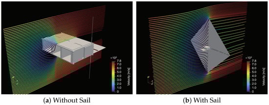At orbital altitudes of 185 km and 300 km, cases of MOVE-III without deploying the sail and after deploying two sail sizes of 4 m2 and 6.25 m2 were simulated, respectively. The attitude of the CubeSat was set to be and . The effect of utilizing different sail sizes on the drag force and is shown in Table 5.